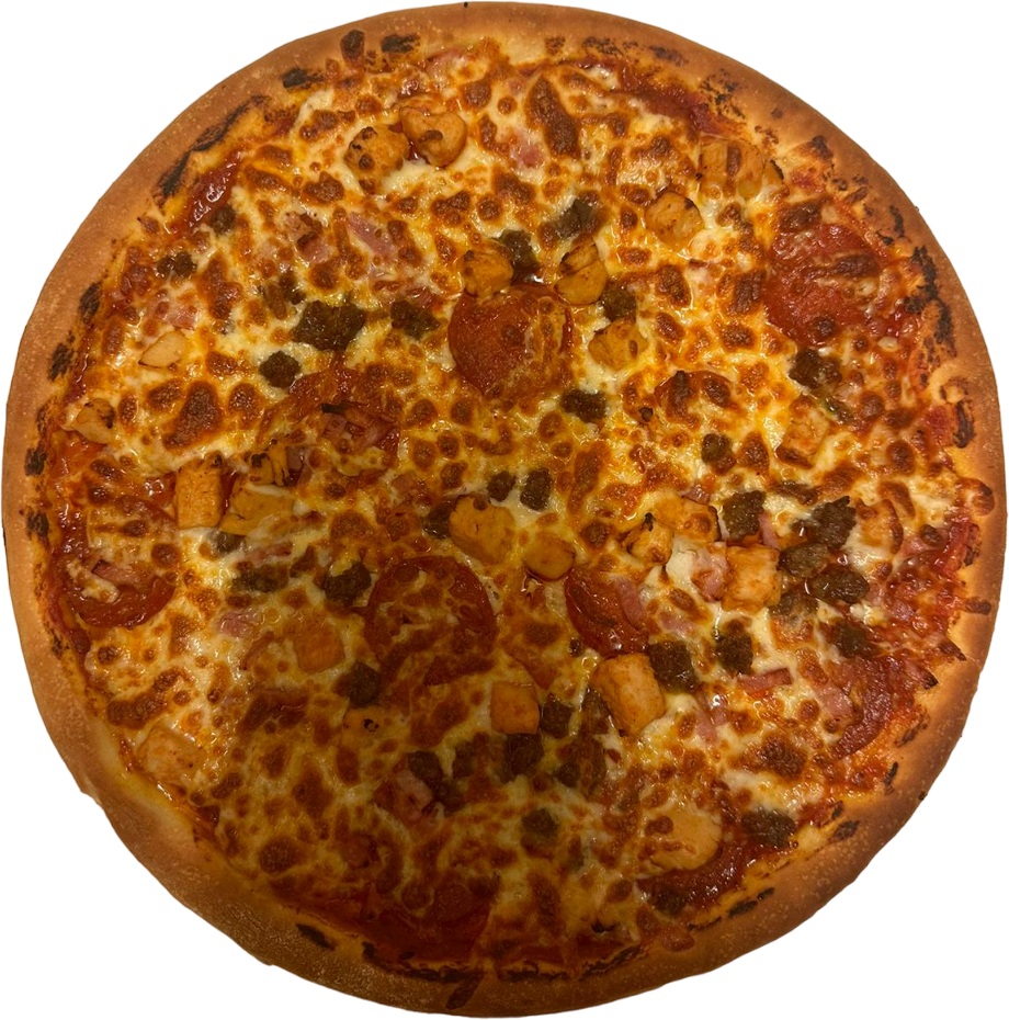 All pizzas come with tomato base, except otherwise stated or chosen. Choose your base: Cheese & tomato base, BBQ, chilli OR garlic Choose your base: deep pan or thin crust